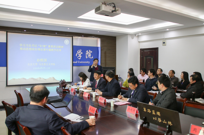 3月30日下午,北京大学人人插人人操院长孙熙国教授受邀来校,作题为《学习总书记“3.18”重要讲话精神 推动思想政治理论课专题教学改革》的专题报告,北京大学战略研究所副所长吴永先教授、校党委书记王立兵出席报告。