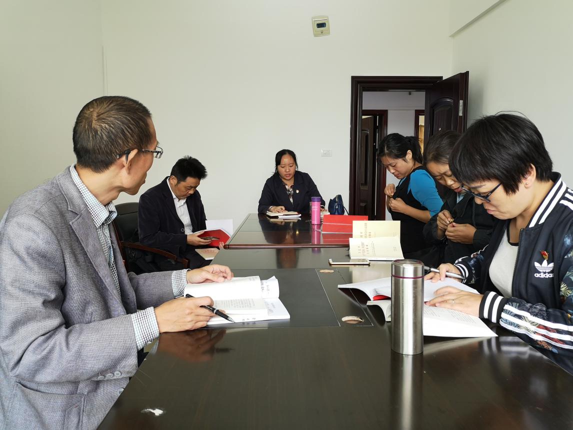 第二环节继续学习了《习近平关于“不忘初心、牢记使命”论述摘编》部分内容。此环节由程晓燕、周丹两位同志先后领读了《习近平关于“不忘初心、牢记使命”论述摘编》第五篇、第六篇内容,并根据自己的学习体会进行了提纲挈领式的分享。第五篇把政治建设摆在首位,不断增强“四个意识”、坚定“四个自信”、做到“两个维护”,主要学习了遵守党的政治纪律和政治规矩的重要意义、内容,学习为什么要增强“四个意识”,从而自觉维护党中央权威,在思想上政治上行动上同党中央保持一致。第六篇以“为人民服务”这一根本宗旨为主旨,讲述了坚持以人民为中心的根本立场的重要性、必要性以及把群众观点、群众路线植根于思想中、落实到具体行动中的具体要求。程小燕和周丹同志查阅了资料,在认真学习基础上概括总结,谈了自己心得体会,蔡潇、余延池等同志进行了补充说明和交流。