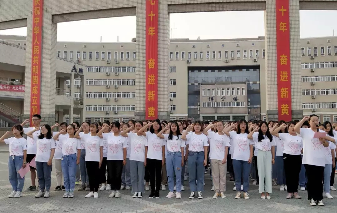 作为一名光荣的黄师学子,面对鲜艳的国旗,我们庄严宣誓:我们始终高举马克思主义理论的旗帜,坚决拥护中国共产党的领导,耐心聆听恩师们的教诲,用心感受父母的恩情,心怀报效祖国之志,做新时代的德智体美劳全面发展的社会主义建设者和接班人。誓言声阵阵激昂、同学们斗志满满。