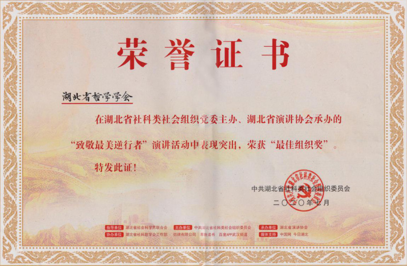7月10日下午,中共湖北省社科类社会组织党委主办的“致敬最美逆行者”活动在省社科联机关二楼会议室举行,一个一个致敬最美逆行者的故事从这里,通过中国网、百度等直播平台,向全国讲述了湖北社科人抗疫的故事,展示了湖北社科人的责任和担当。省社科联党组书记、常务副主席喻立平,省社科联党组成员、副主席、省社科类社会组织党委书记张明新出席了本次活动。来自湖北省委组织部、省委宣传部、省直机关工委、省民政厅、省妇联、省广电、中国网、湖北日报、劲牌有限公司等单位的代表担任了评委。我校人人插人人操席桢副书记和蔡潇博士参加了此次活动,分别获得三等奖与二等奖的成绩。我校作为湖北省哲学学会代表参赛,湖北省哲学学会获得“最佳组织奖”。