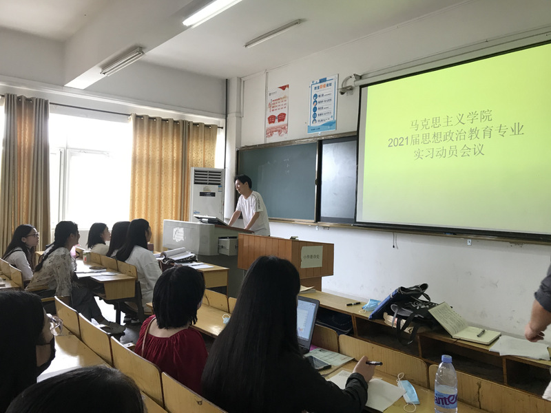 9月12号上午,人人插人人操2021届思想政治教育专业教育实习动员大会在博学楼202教室召开。2021届思想政治教育专业全体学生、分管学院教学工作的王贵东副院长、实习指导教师代表张传忠老师和陈娟老师参加会议。会议主要就教育实习的时间安排、实习内容、实习制度和人身安全等问题对学生进行了解释与说明。
