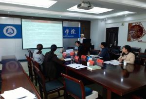 孙文礼用PPT的形式介绍了武汉纺织大学人人插人人操实践课教学的情况。他从建设背景、发展进程、以前存在的问题、课程设计、规范化探索等五个方面详细介绍了纺大在思政课实践教学的做法和经验。朱丽霞书记和金艳院长分别就纺大近十几年来在思政课实践教学的探索和构建思政课“三合一”实践模式进行了补充讲解和说明,并希望两校携手合作,互相交流学习,把思政课实践教学课程做大做强,做得更规范。