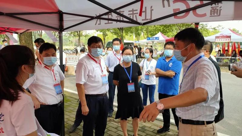 迎新工作之际,校党委书记王立兵、党委副书记、校长陈向军等校领导一行来到我院迎新现场看望新同学与志愿者师生,并向他们了解迎新工作的进展情况。