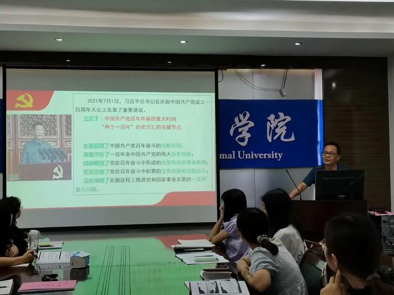彭旺林老师以“七一”重要讲话蕴含的主要思想和要求阐述如何把握宣讲内容,并提出了八个宣讲选题:实现中华民族伟大复兴贯穿党的百年奋斗主题;论述“两个一百年”奋斗目标及其相互关系;强调三个“深刻改变”和阐释“四个伟大成就”、“五个庄严宣告”;“九个必须”;伟大的建党精神;对青年的期望;对全体党员发出的号召。彭老师强调要把学习习近平总书记“七一”讲话精神同总结经验、联系实际、推动工作结合起来,还要把学习的成效不断转化为工作的动力和时效。