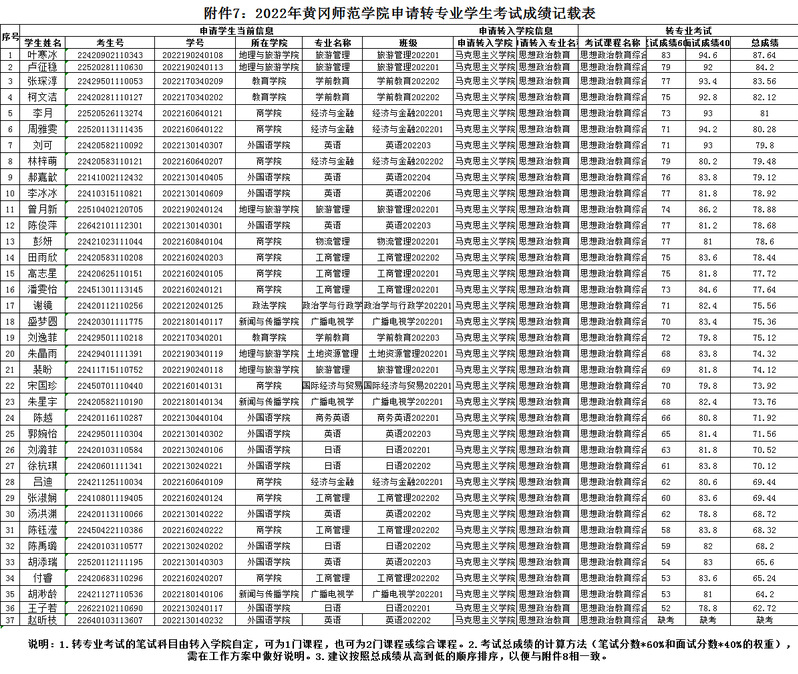 2022年黄冈师范学院人人插人人操转专业成绩公示
