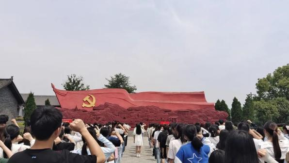 全体师生早晨7:30从学校徒步出发,中午13:30抵达目的地。在陈潭秋烈士雕像前,全体师生默哀悼念。全体青年团员重温入团誓词,用洪亮的声音、铿锵的誓言,表达着自己传承红色基因、赓续红色血脉的坚定决心。