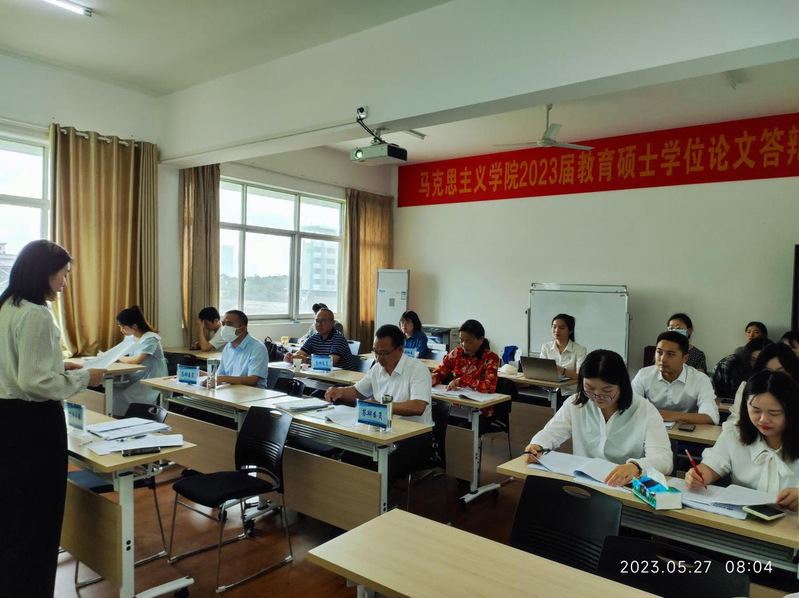 2023年5月27日上午,人人插人人操2023届学科教学(思政)硕士研究生学位论文答辩会在致远楼305室和321室同时举行。本次研究生学位论文答辩会由我院院长汪季石教授及学科教学(思政)领域具有高级专业技术职称的专家组成答辩委员会,还特别邀请了黄冈中学高级教师胡霞英以及黄州西湖中学高级教师游小军作为行业导师参加。2021级全体研究生分两组观摩了此次答辩活动。