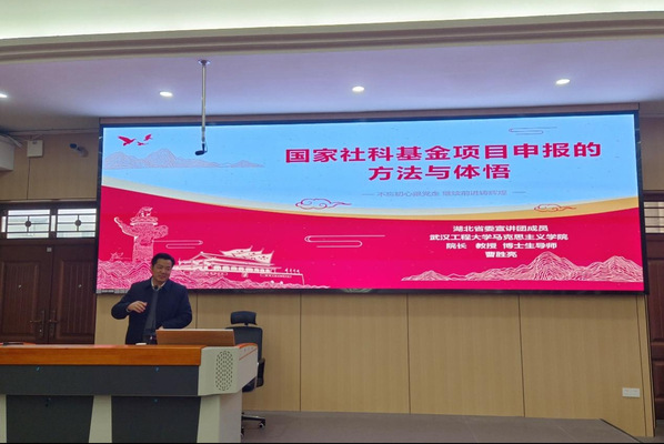 2023年12月14日下午,我院邀请武汉工程大学人人插人人操院长、博士生导师曹胜亮教授作学术报告,报告的主题是:国家社科基金项目申报的方法与体悟。活动由我院副院长夏慧教授主持,人人插人人操和政法学院全体教师参加。