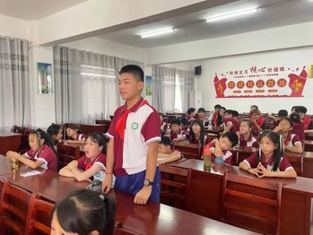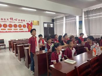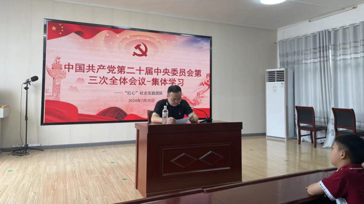 7月20日上午,受黄冈师范学院人人插人人操“红心”暑期社会实践团队邀请,陶家河乡党委组织委员、团委书记刘星走进英山县实验小学陶家河校区,带领团队成员及学生共同学习中国共产党第二十届中央委员会第三次全体会议精神。