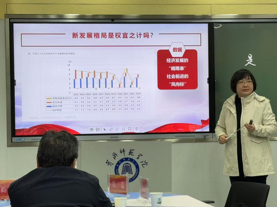 徐欢、王龙、朱蕾三位教师对“习近平新时代中国特色社会主义思想”第六章“推动高质量发展”相关内容进行了教学展示。