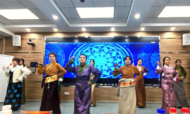 此外,尹志与藏族学生共同参加了学校举办的藏历新年联欢会。身着节日盛装的同学们在舞台上表演了《幸福拉萨》等传统歌舞,师生们互动游戏,现场洋溢着欢快的节日氛围。学院学生工作团队还组织藏族学生共进“团圆饭”。