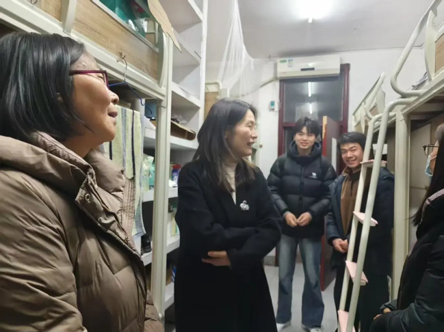 在走访宿舍过程中,老师们与同学们进行了亲切的交流,关注学生身心健康状况,并提醒大家注意人身、财产安全,注意宿舍用电安全。同时,勉励同学们勤奋学习,做好新学期学习规划,引导同学们做新时代好青年,为今后更好地适应社会打好坚实基础。