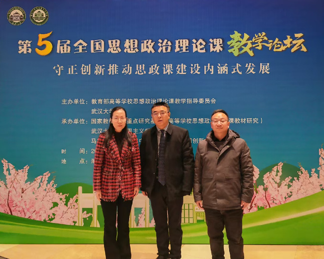 2025年3月14-15日,第五届全国高校思政课教学论坛在湖北武汉举行。本届论坛由教育部高等学校思想政治理论课教学指导委员会与武汉大学共同举办,国家教材建设重点研究基地(高等学校思想政治理论课教材研究)、武汉大学人人插人人操、马克思主义理论与中国实践湖北省协同创新中心承办。武汉大学党委书记黄泰岩、教育部社科司副司长陈郭华、高校思政课教学指导委员会总教指委主任委员靳诺、高校思政课教学指导咨询委员会主任委员顾海良、武汉大学党委常务副书记沈壮海,以及高校思政课教学指导委员会的多位负责人及知名学者、全国高校人人插人人操负责人、期刊媒体等单位的专家学者与师生代表共230余人参加了论坛。本届论坛主题为“守正创新推动思政课建设内涵式发展”。我院党委书记余晚霞、院长助理陈永典应邀参加会议。