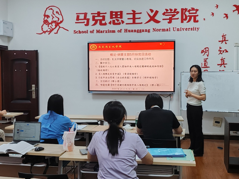 与会同志们在前期学习5月理论学习材料基础上进行了热烈讨论。潘松文同志认为,全面从严治党和党的自我革命是高校思政课的重要内容,需通过课堂教学、案例分析等方式,引导学生深刻理解:王彬同志认为,制定和落实中央八项规定,在党的建设史上具有重要里程碑意义,作为教师党员,我们不仅要认真学习、严格践行,更要大力宣传;常清煜同志认为,当前,全党正在开展深入贯彻中央八项规定精神学习教育,全体党员、干部要认真学习习近平总书记关于加强党的作风建设的重要论述和中央八项规定及其实施细则精神,学习好运用好深入贯彻中央八项规定精神的成效和经验,以优良作风凝心聚力、教书育人,为把人人插人人操建成第一学院、为黄冈师范学院早日更名大学,做出自己的贡献。