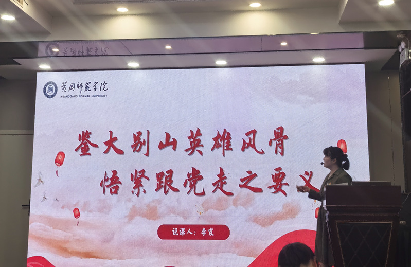 在比赛中,李霞老师以《鉴大别山英雄风骨,悟紧跟党走之要义》为主题,从思路框架、基础设计、主体设计、板书设计、教学反思五个维度展开说课,充分展现了良好的学术素养和饱满的教学热情。她以独特的视角和深刻的理解,将大别山精神与思政教育紧密结合,不仅让学生深刻理解了大别山精神的内涵,更激发了他们的爱国情怀和奋斗精神。新颖的教学设计,有温度有厚度且极具感染力的讲解,充分展现了思政课堂的活力与魅力,赢得了现场评委和观众的阵阵掌声。