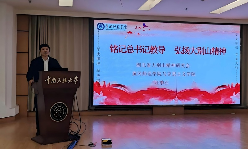在学术报告环节,黄冈师范学院人人插人人操汪季石教授应邀以《铭记总书记教导,弘扬大别山精神》为题做专题报告。