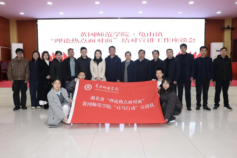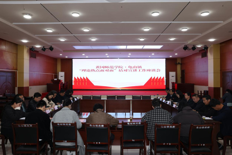 3月25日上午,我院组织召开的黄冈师范学院与麻城龟山镇“理论热点面对面”结对宣讲工作座谈会在龟山镇政府会议室进行。会议聚焦推动党的创新理论深入基层、深入人心,围绕深化校地协同、优化宣讲模式、提升“百马行动”实效展开深入交流,旨在打造资源共享、优势互补的理论传播与服务平台。座谈会由我校党委宣传部副部长姚保卫主持。